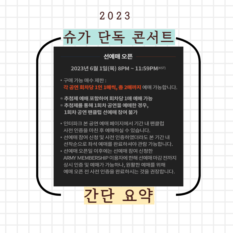 - 일반예매 오픈: 2023년 6월 2일(금) 8PM(KST) ~ 각 공연 당일 오전 9시까지