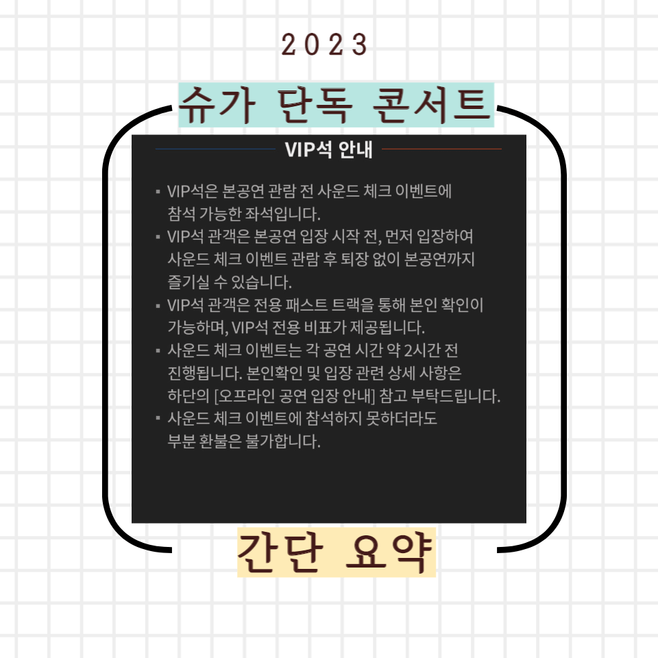 ※ VIP석 안내: VIP석은 본공연 관람 전 사운드 체크 이벤트에 참석 가능한 좌석입니다.