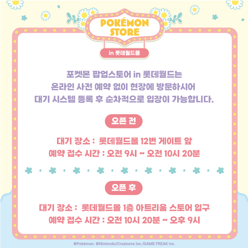 * 포켓몬 팝업스토어는 현장 방문 예약제로 운영되며, 예약에 관한 상세 사항은 별도 공지 드릴 예정입니다.